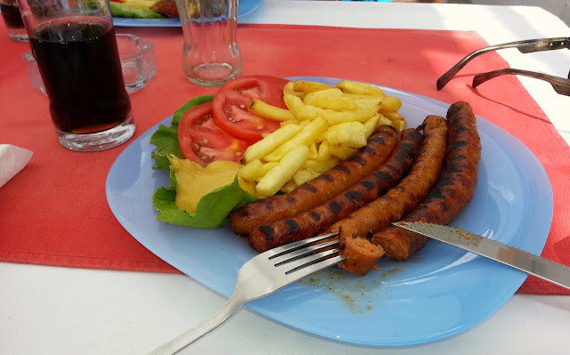 Ostatecznie zdecydowaliśmy, że zjemy w przyjemnie wyglądającej restauracji poza starym miastem. Dań było sporo i ciężko było nam się namyśleć, jednak wybraliśmy własnej roboty kiełbaski grillowane, do tego frytki, pomidor oraz musztarda. Zapłaciliśmy dość dużo jak na naszą kieszeń, bo za dwa dania zostawiliśmy tam 160 kun, lecz porcje były naprawdę spore i smaczne, więc nie żałowaliśmy wydanych pieniędzy.