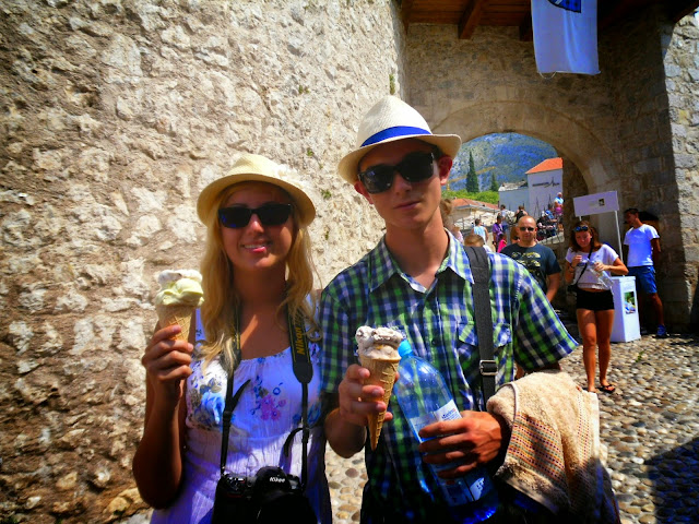 Stojąc na moście obserwowaliśmy skaczących z niego mężczyzn, jednak przez tłum ludzi nie było nic widać, więc powolnym krokiem skierowaliśmy się nad rzekę. Po drodze kupiliśmy przepyszne lody! Na straganie obok mostu sprzedawane było olejki lawendowe z Dubrownika oraz inne przedmioty, za niższą cenę! Warto o tym pamiętać, jeśli chce się kupić pamiątki ;)