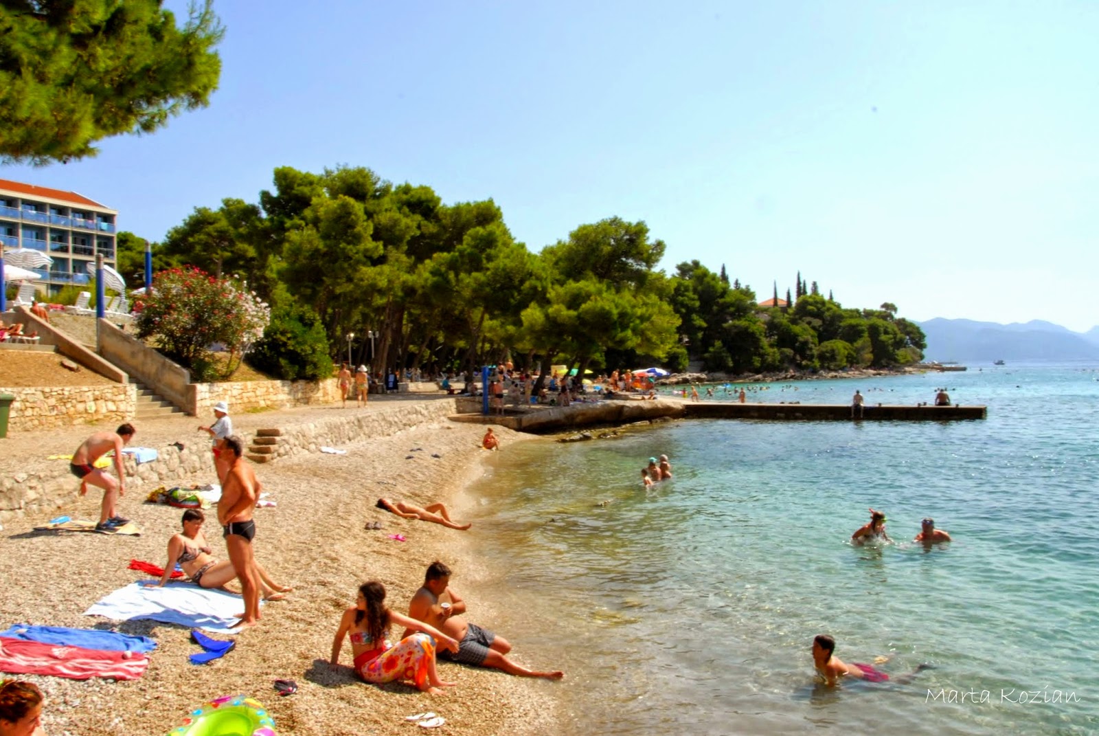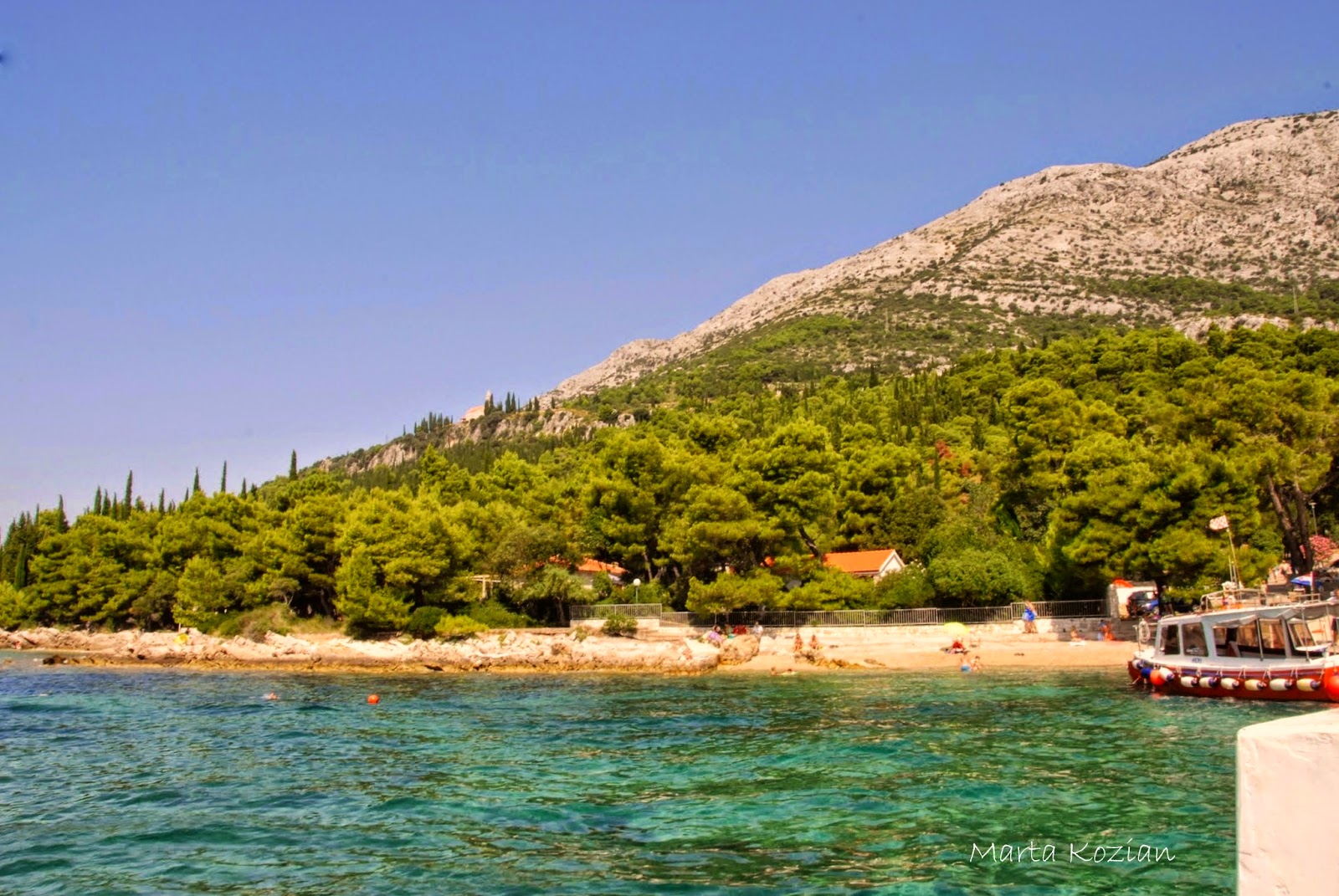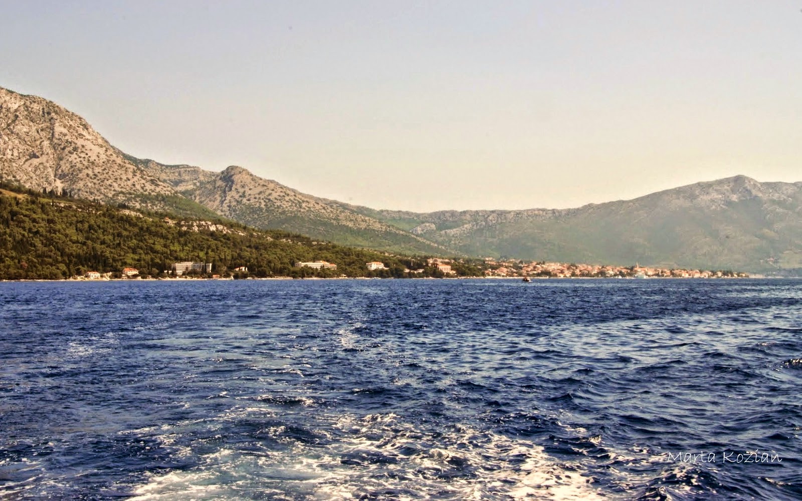Nad ranem dojechaliśmy na Półwysep Pelješac, który jest drugim co do wielkości półwyspem w Chorwacji, rozciąga się na długości 65 km pomiędzy stałym lądem wyspami Korčula i Mljet. Podróż była dość męcząca, pomimo tego, że trwała tylko 3 godziny. Wzięliśmy śpiwory i karimaty, a następnie całą grupą poszliśmy spać na plażę przy Grand Hotel Orebić. O godzinie 6 rano, wstaliśmy i położyliśmy się w trochę innym miejscu, bliżej autokaru i lasku. Miejsce było wspaniałe! Później dowiedzieliśmy się, że ktoś robił nam zdjęcia jak śpimy, ale wtedy śmialiśmy się z tego... O godzinie 8:30 wstaliśmy, zjedliśmy śniadanie i o godzinie 11 poszliśmy na hotelową plażę. Bolek załatwił nam prom na Wyspę Korčulę po niższej cenie! Zapłaciliśmy po 10 kun od osoby. Czekając na nasz prom podziwialiśmy przepiękne widoki, czuliśmy się jak w raju!