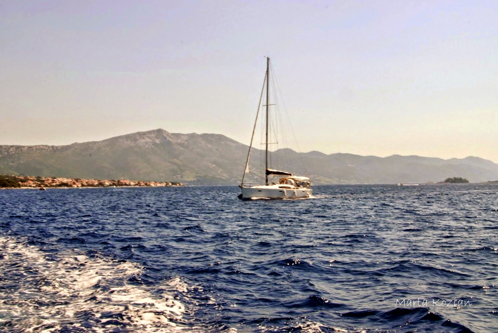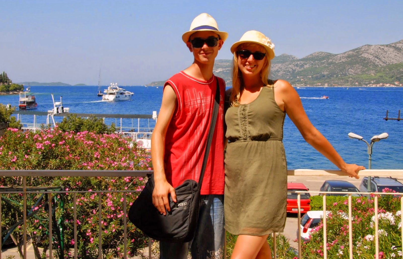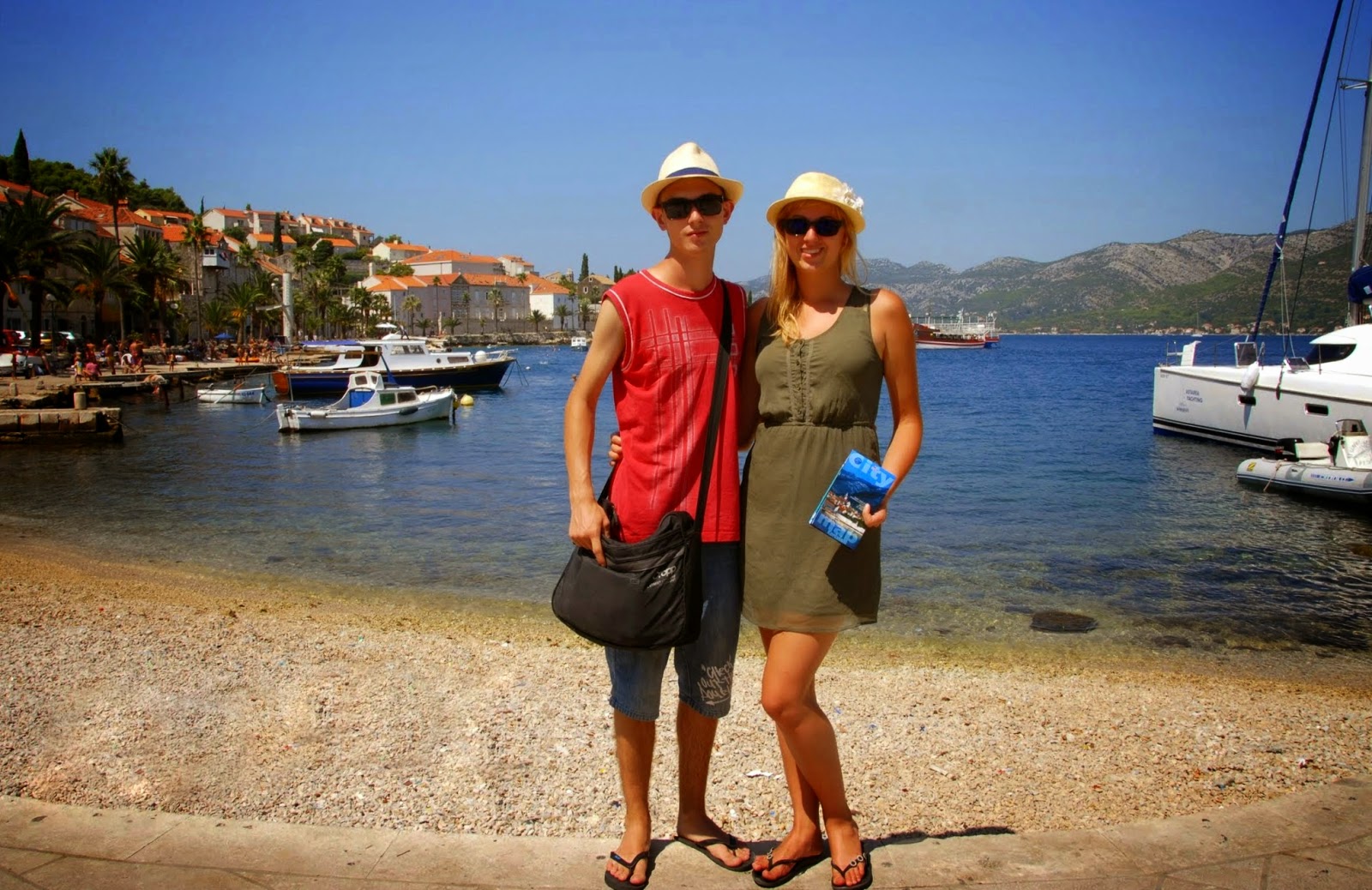 Nad ranem dojechaliśmy na Półwysep Pelješac, który jest drugim co do wielkości półwyspem w Chorwacji, rozciąga się na długości 65 km pomiędzy stałym lądem wyspami Korčula i Mljet. Podróż była dość męcząca, pomimo tego, że trwała tylko 3 godziny. Wzięliśmy śpiwory i karimaty, a następnie całą grupą poszliśmy spać na plażę przy Grand Hotel Orebić. O godzinie 6 rano, wstaliśmy i położyliśmy się w trochę innym miejscu, bliżej autokaru i lasku. Miejsce było wspaniałe! Później dowiedzieliśmy się, że ktoś robił nam zdjęcia jak śpimy, ale wtedy śmialiśmy się z tego... O godzinie 8:30 wstaliśmy, zjedliśmy śniadanie i o godzinie 11 poszliśmy na hotelową plażę. Bolek załatwił nam prom na Wyspę Korčulę po niższej cenie! Zapłaciliśmy po 10 kun od osoby. Czekając na nasz prom podziwialiśmy przepiękne widoki, czuliśmy się jak w raju!