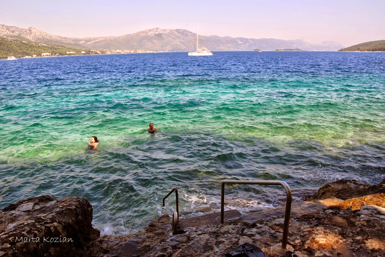 Po zwiedzaniu Starego Miasta poszliśmy na plażę. Woda była wspaniała, a jej kolor po prostu nie z tej ziemi! Plaża była kamienista, a na dnie niestety były jeżowce. Udało nam się jednak popływać ;)