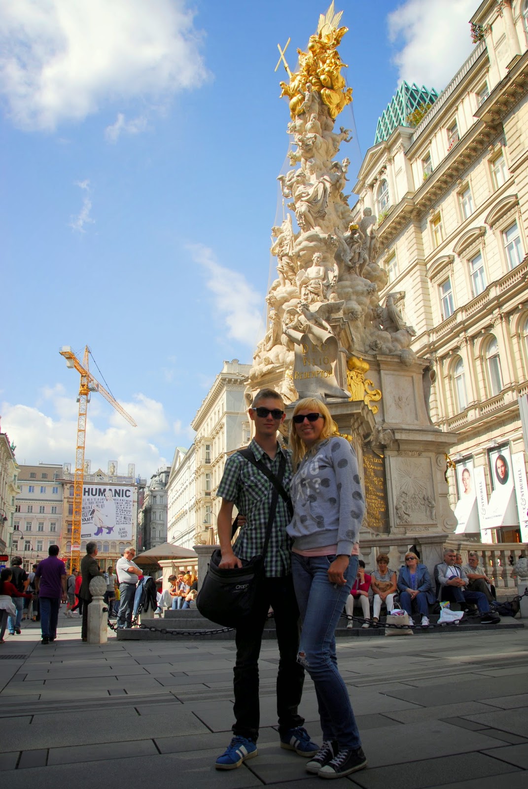 Zatrzymaliśmy się na chwilę przy przepięknej barokowej kolumnie Trójcy Świętej, zwanej Kolumną Morową (niem. Pestsäule), której twórcą jest Leopold I. Wzniósł ją w celu uczczenia faktu, iż udało mu się przeżyć epidemię dżumy piętnującej miasto w 1679 roku. Została usytuowana na Placu Graben. Początkowo była drewnianą budowlą, pod którą zakopywano zwłoki mieszkańców Wiednia niemających tyle szczęścia co Leopold I (poumierali od zarazy). Pierwotna wersja kolumny została zastąpiona marmurową zaprojektowaną przez Matthiasa Rauchmillera. Do dnia dzisiejszego można ją oglądać pod taką postacią. Jej najwyższą część zdobią kunsztowne reliefy przedstawiające rozmaite sceny, które jednak mówią jednoznacznie – wiara może zwyciężyć z każdym złem, nawet z zarazą.