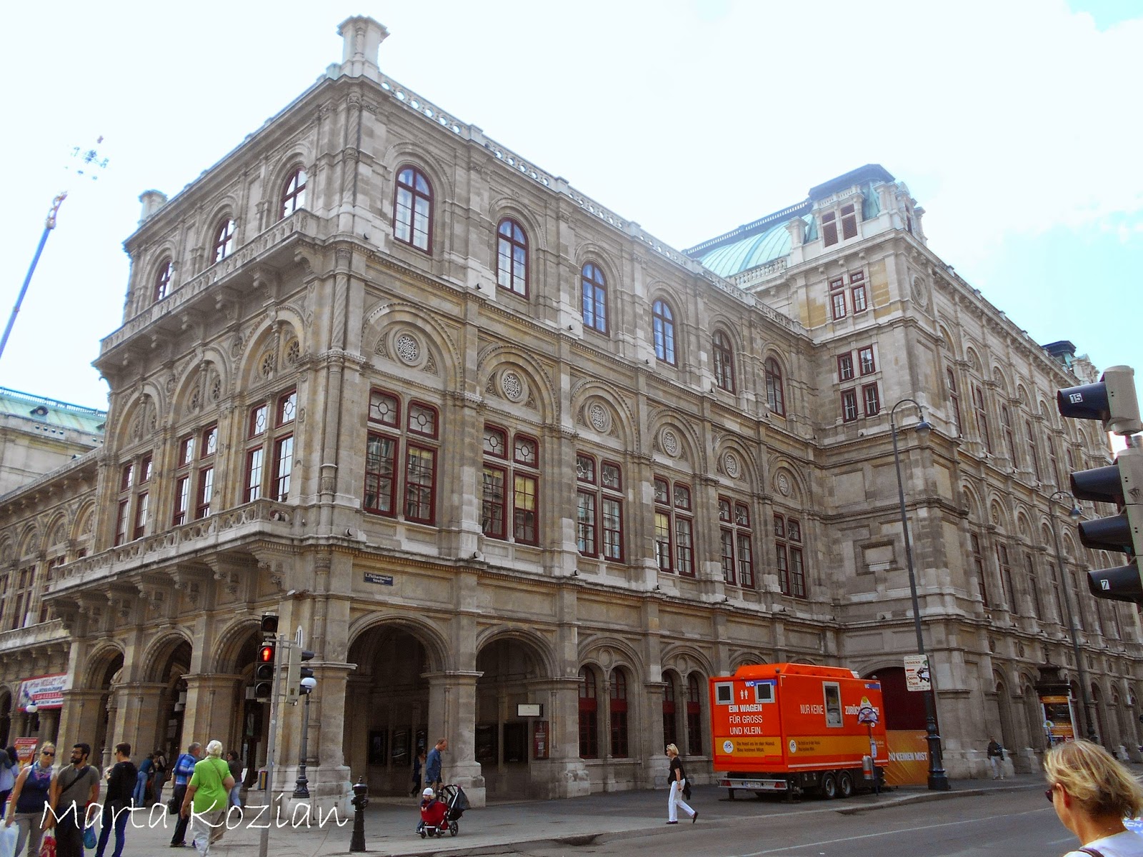 Następnie przeszliśmy obok Opery Państwowej – budynek ukończony został w 1869 roku, a inauguracyjnym przedstawieniem była opera Mozarta pod tytułem „Don Giovanni”. Budowla powstała w stylu neorenesansowym, a jej architektami byli August Siccardsburg oraz Edward von der Null. Budynek nie od razu przypadł do gustu mieszkańcom miasta, być może miało to wpływ na to że, obaj architekci wkrótce po otwarciu opery popełnili samobójstwo. W 1945 roku gmach opery został zbombardowany, odbudowa trwała 10 lat. W 1955 opera została ponownie otwarta dla widzów. Spektaklem inaugurującym otwarcie ulepszonej i rozbudowanej opery był „Fiedelio” Beethowena. Jednymi z najbardziej okazałych elementów budynku są: schody wykonane z marmuru, dłuta Josefa Gassera, sala Herbaciana, w której odpoczywał Franciszek Józef I oraz ogromny foyer Schwinda.