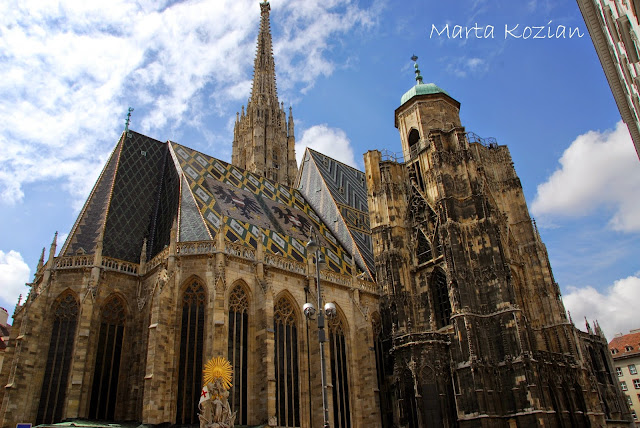 W końcu dotarliśmy do Katedry św. Szczepana. Katedra, którą nazwano na część św. Szczepana, pierwszego męczennika chrześcijaństwa, to samo centrum i serce Wiednia. Stoi na tym miejscu od ponad 800 lat, choć uległa w tym czasie licznym przebudowom. Dominuje w niej jednak styl późnogotycki. Najstarsze fragmenty świątyni to Brama Olbrzymów i Wieże Pogańskie, pozostałe po romańskim kościele z XIII w. Katedra, zniszczona w czasie II wojny światowej, została odbudowana w dawnym kształcie wysiłkiem całego narodu. W podziemnej krypcie pod głównym ołtarzem znajdują się urny ze szczątkami Habsburgów. Zrobienie zdjęcia tej Katedrze nie należy do łatwych, bo ciężko objąć obiektywem jej potężne rozmiary.