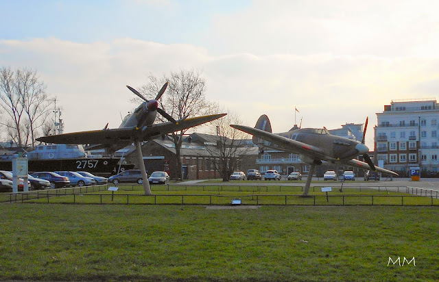Wejścia do Muzeum RAF strzegą dwaj bohaterowie bitwy o Anglię - Supermarine Spitfire i Hawker Hurricane.