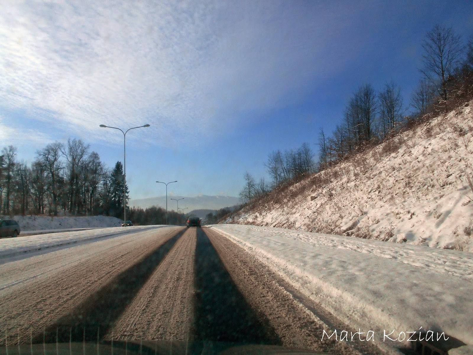 Gdy przed Jelenią Górą odbiliśmy na Karpacz droga stała się nie za ciekawa... Trzeba było zdjąć nogę z gazu, bo było niesamowicie ślisko.