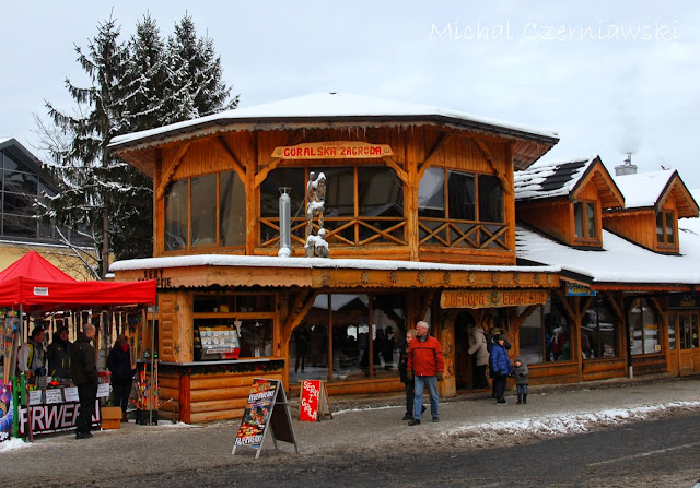Nasz wybór padł na "Góralską Zagrodę", w której zamówiliśmy gorącą czekoladę za 9 zł... Nie jest to rewelacyjna cena, lecz tak jak się spodziewaliśmy, toaleta dla klientów była darmowa, a gdybyśmy nie zamówili nic to musielibyśmy zapłacić po 2 zł od osoby... Zagrzaliśmy się, wypiliśmy gorącą czekoladę i spędziliśmy bardzo miły czas we dwoje :)