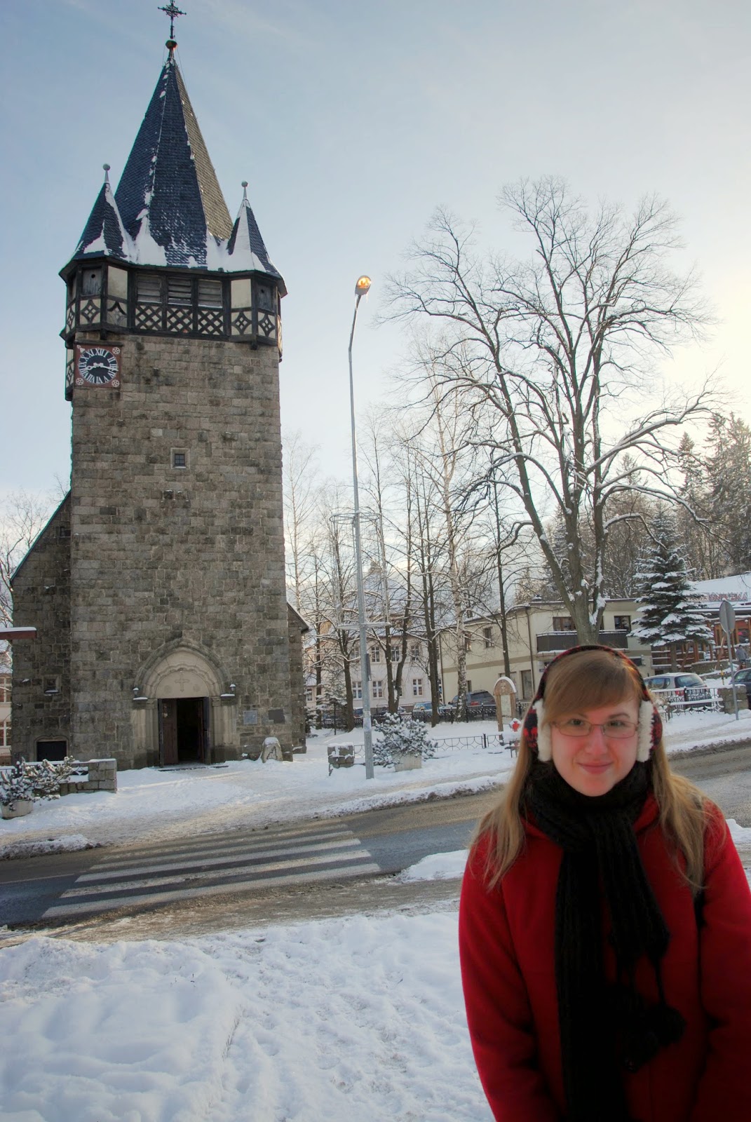 Idąc dalej zobaczyliśmy Kościół Nawiedzenia Najświętszej Marii Panny - charakterystyczna sylwetka świątyni wraz z cebulastym hełmem wieży nawiązuje do barokowego budownictwa tyrolskiego.