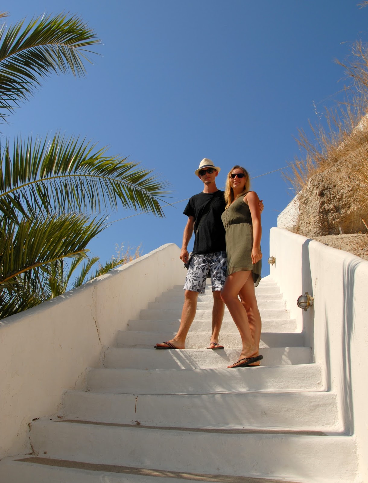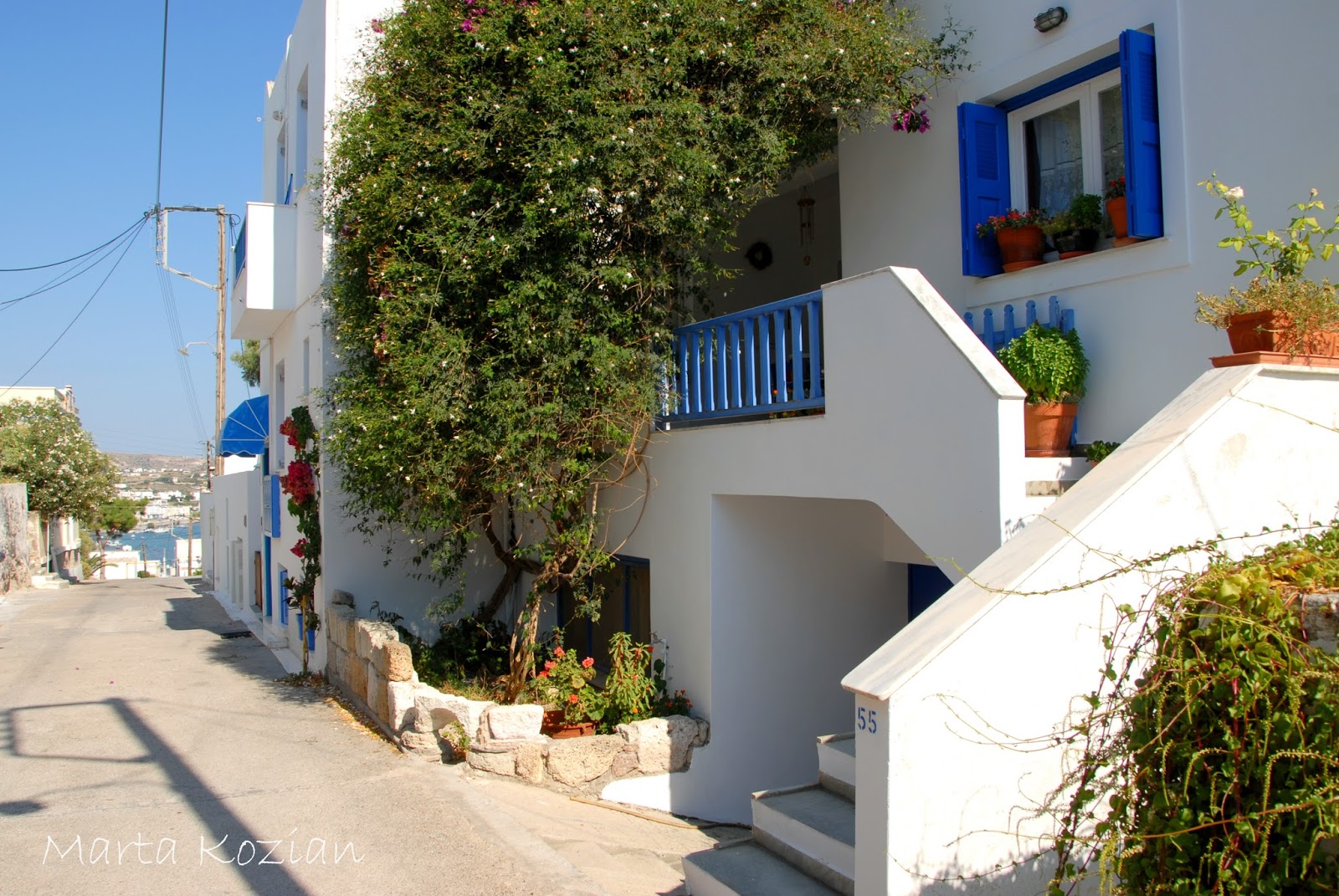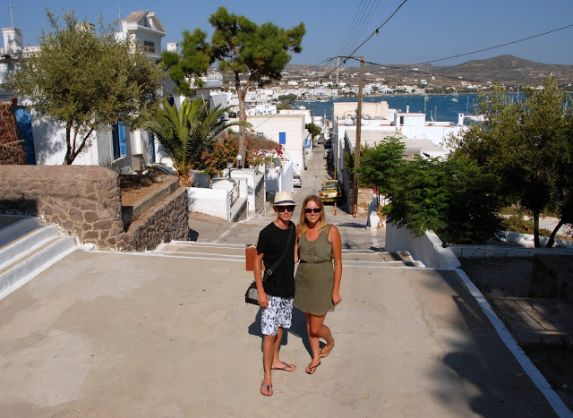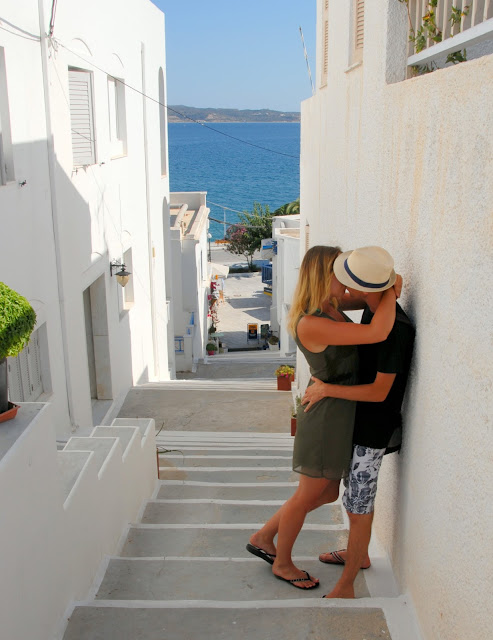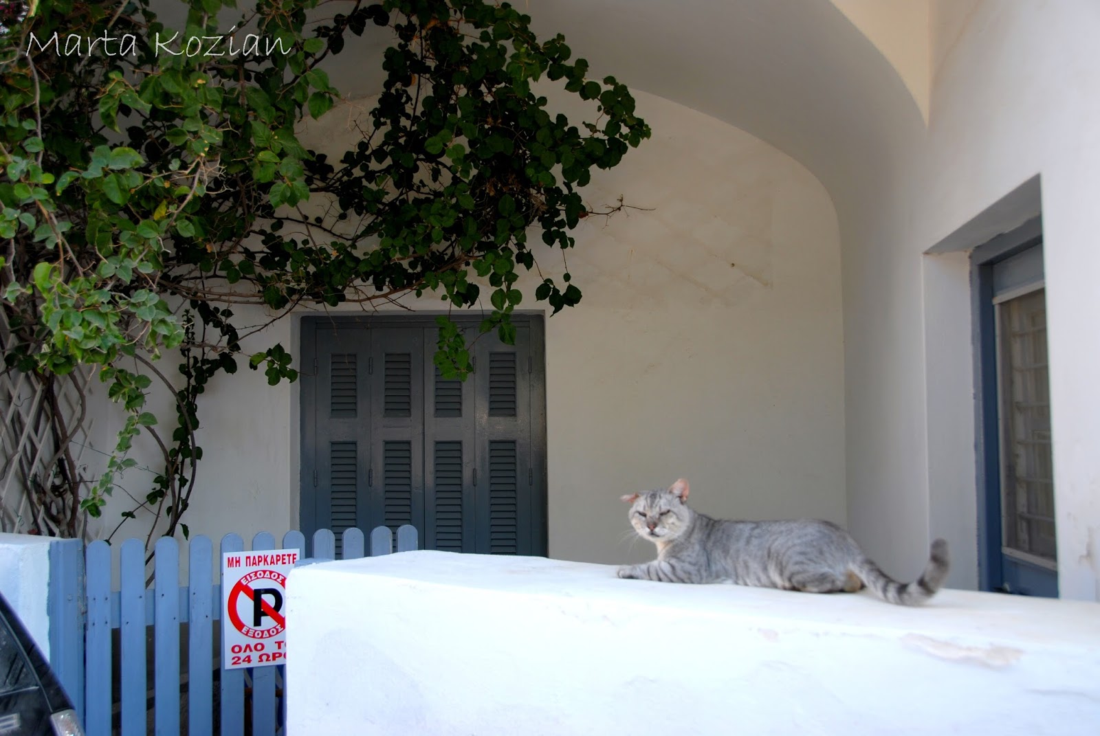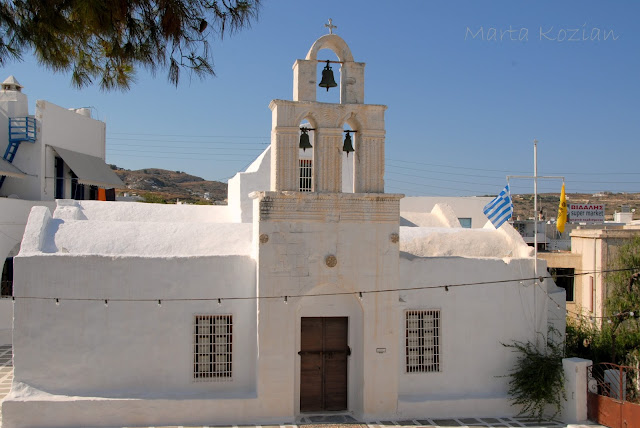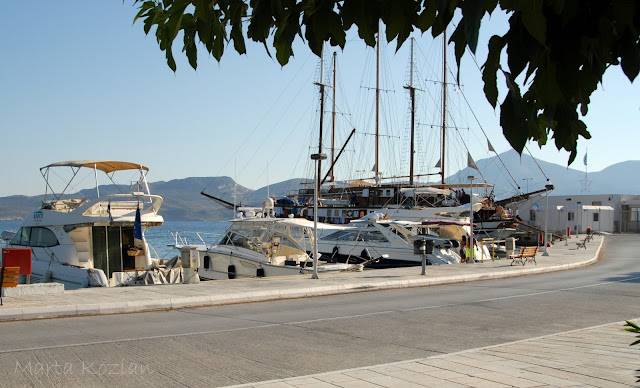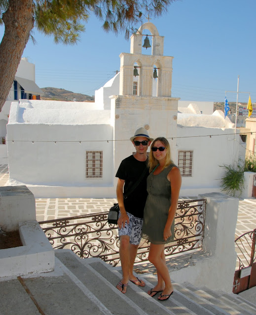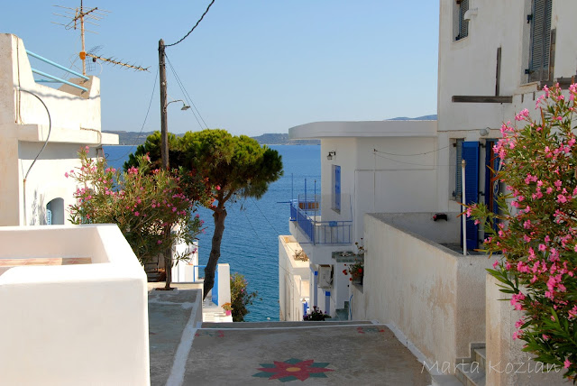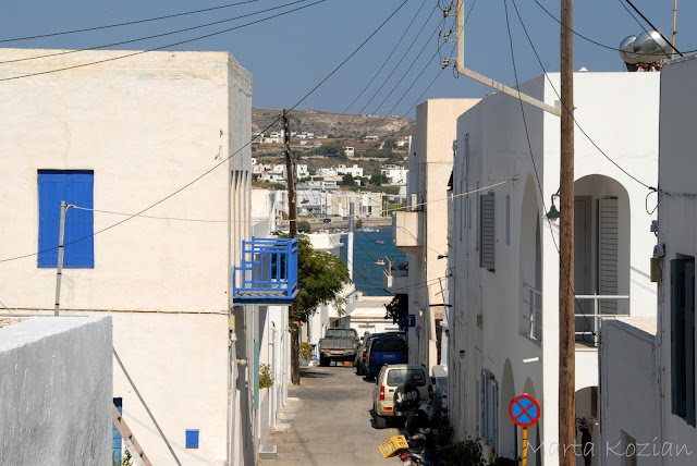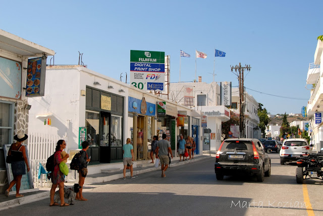 Po kąpieli ruszyliśmy na miasto szukać marketu i podziwiać przepiękne, typowo greckie widoki, których tak bardzo brakowało nam na kontynencie ;) Te białe domki, niebieskie drzwi i okiennice... coś pięknego! Właśnie tak wyobrażaliśmy sobie Grecję!