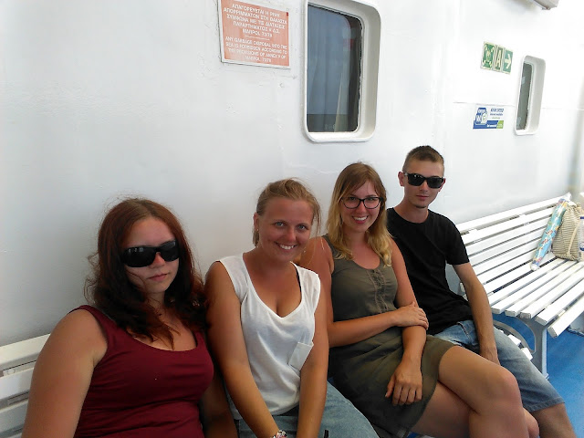 Bolek obudził nas koło godziny 5 rano... Ciężko nam było wstać, ale o 6:30 mieliśmy wejść na prom, a do portu był kawałek drogi, więc zwinęliśmy śpiwory i karimaty, a następnie ruszyliśmy w drogę! Będąc już przy autokarze spakowaliśmy wszystkie najważniejsze rzeczy, które chcieliśmy mieć przy sobie w trakcie tego 8-godzinnego rejsu, a o 6:10 weszliśmy na prom i zajęliśmy miejsce przy kontaktach ;)