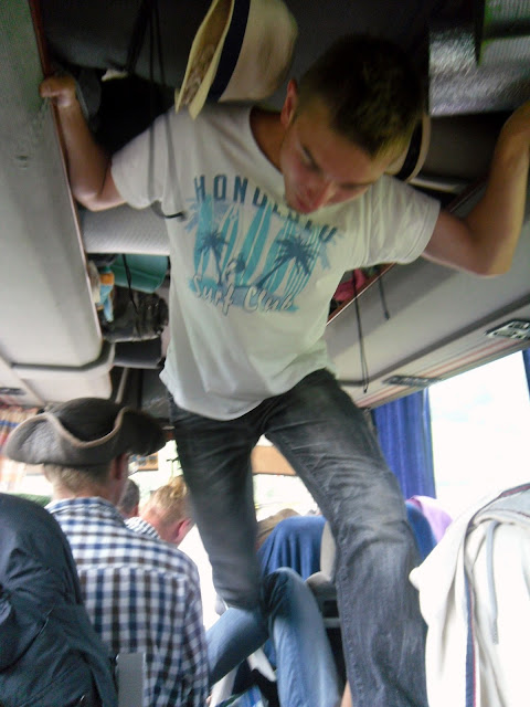 Na poniższych zdjęciach dokładnie widać jak należy poruszać się po naszym bolkowym autokarze ;) Na początku może się to wydawać dość dziwne, lecz z czasem idzie się przyzwyczaić. Choć najgorzej było, gdy czasami podczas nocnej jazdy mieliśmy postój gdzieś na stacji i chciało się wyjść za potrzebą, lecz najpierw trzeba było pokonać wiele przeszkód, w postaci śpiących bolkowiczów, by wydostać się z autokaru... już za tym tęsknimy! ;)